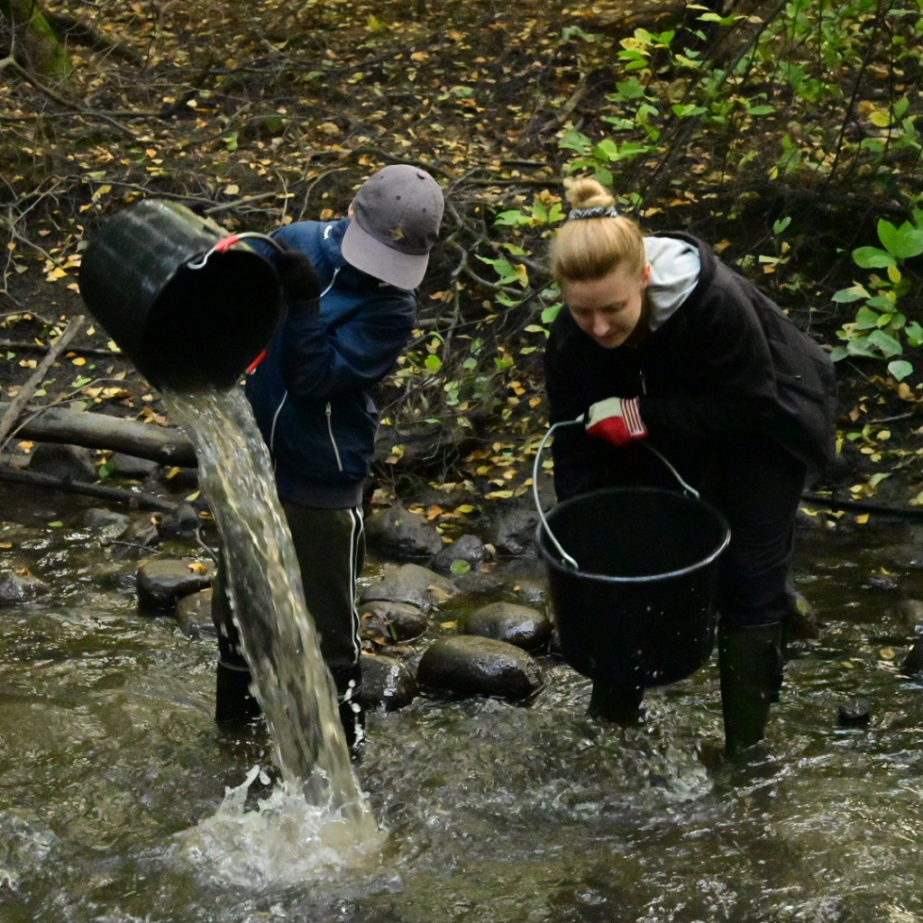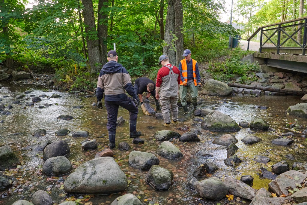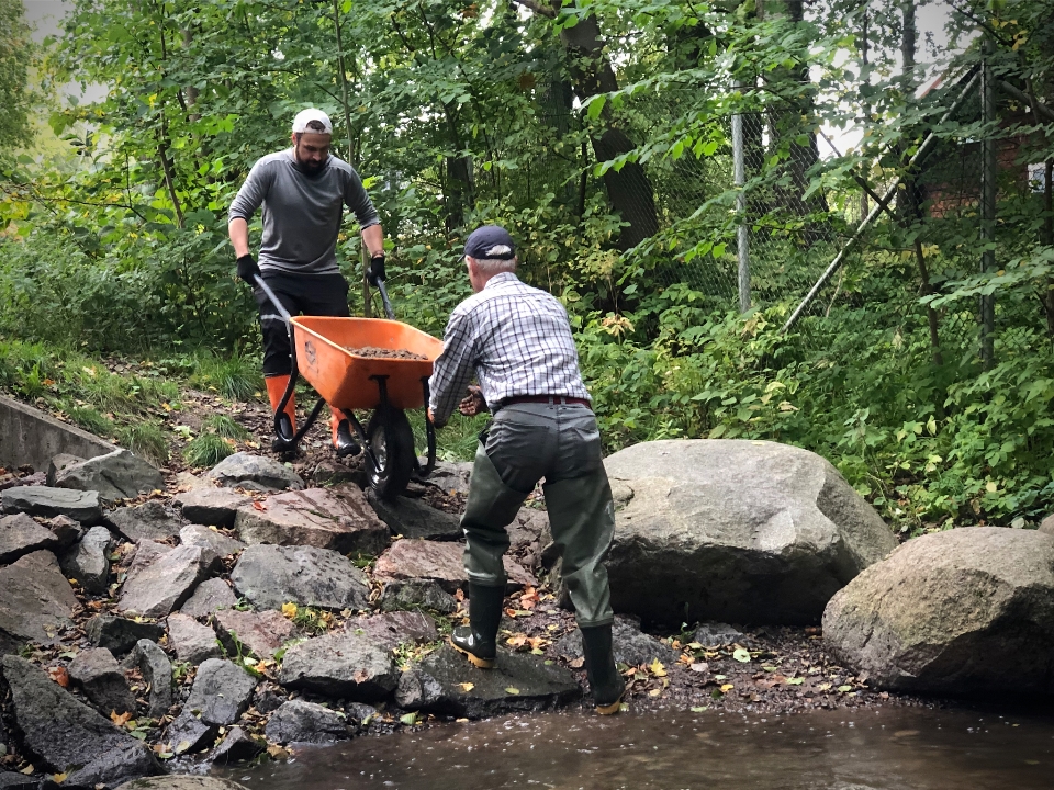Suunnitelman mukaisesti teimme uhanalaisille taimenille kutupaikkoja ja poikasalueita Saunakosken alaosaan. Puhdistimme ja uudistimme ns. siltasoraikon. Puhdistimme muut kutupaikat hiekasta, jota oli viime talven aikana kertynyt huomattavasti enemmän kuin aiemmin. Suurin syyllinen hiekoittumiseen oli lauha ja sateinen talvi. Sateet ja tulvat huuhtoivat sulana pysyneestä maasta jokeen melkoisen määrän kiintoaineksia.