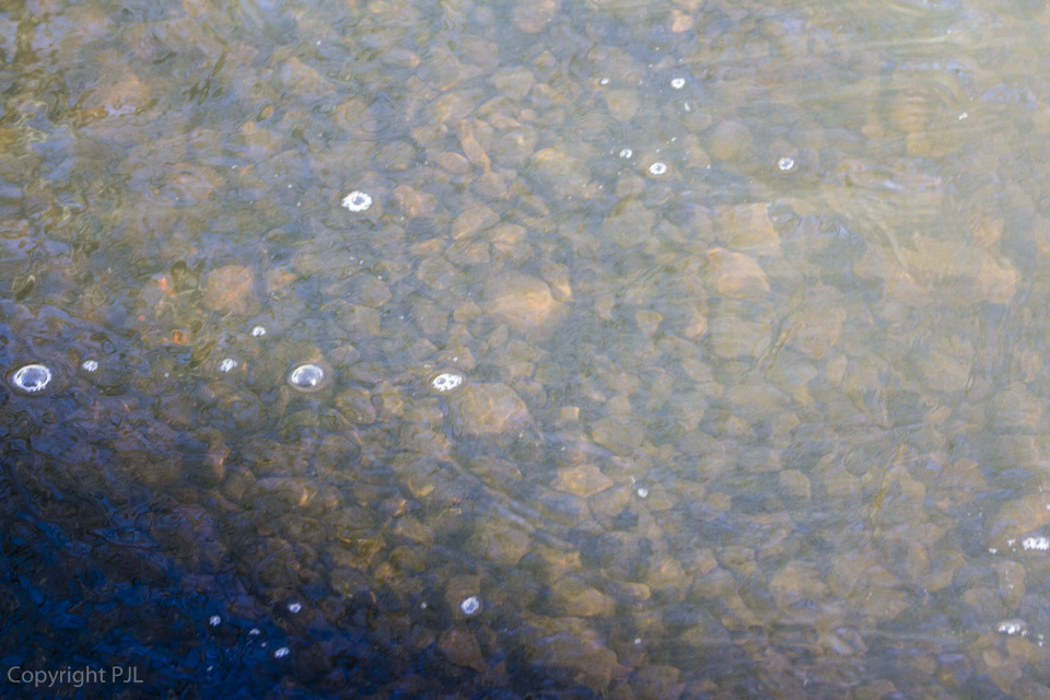 Sora on säilynyt puhtaana eikä siinä näkynyt merkkiäkään hiekoittumisesta. Jos hienoa hiekkaa kertyy kutupesään, se estää veden virtaamisen soran sisällä, jolloin taimenten mäti voi kuolla hapen puutteeseen.