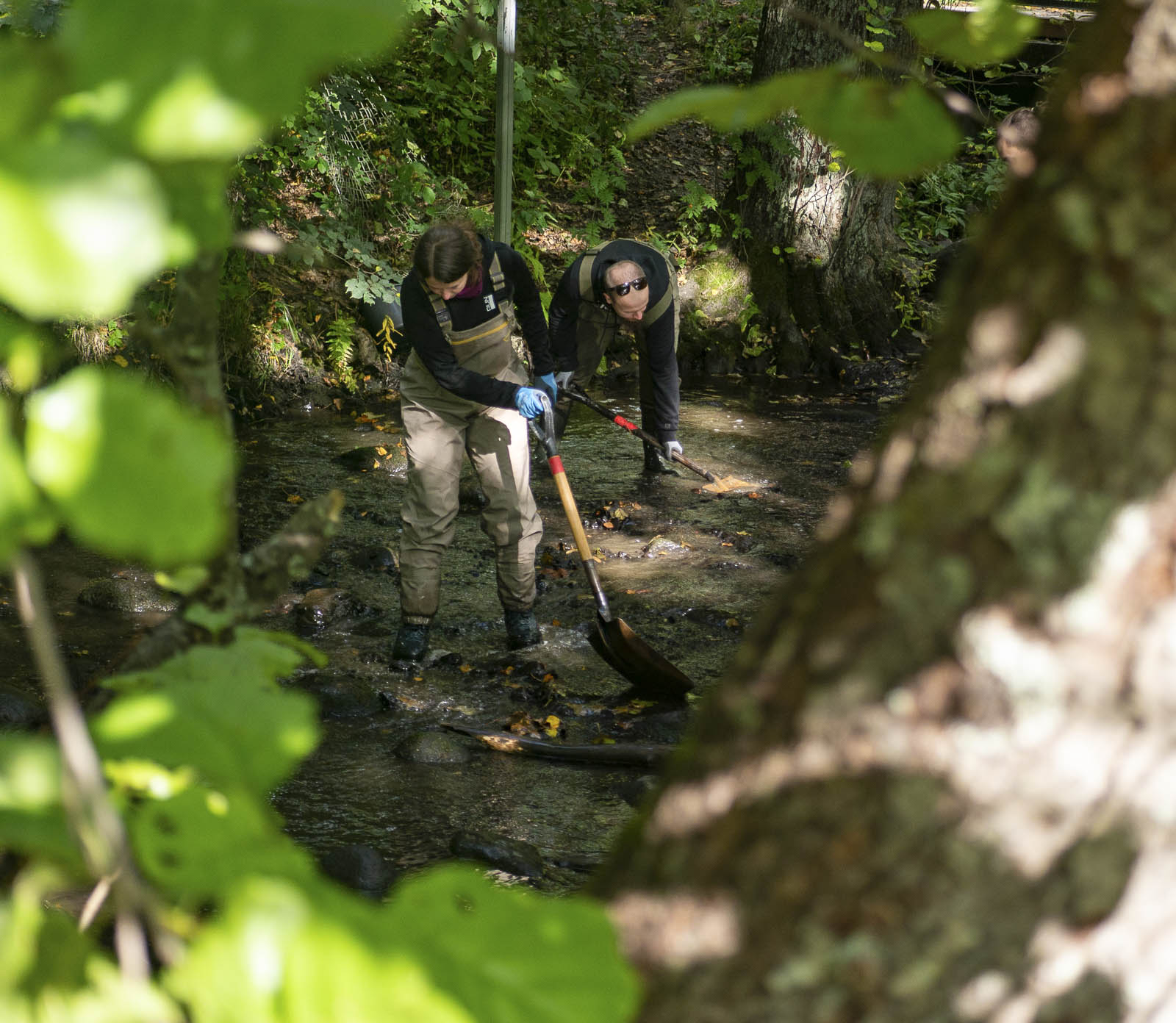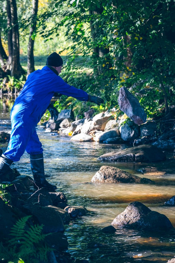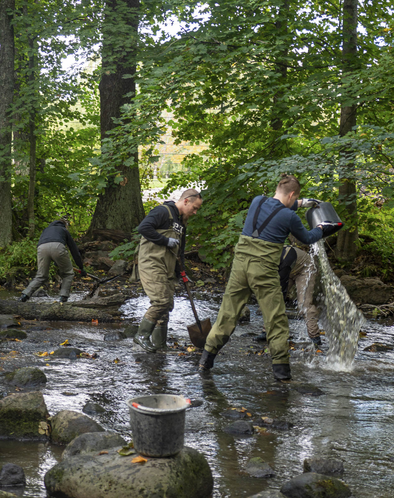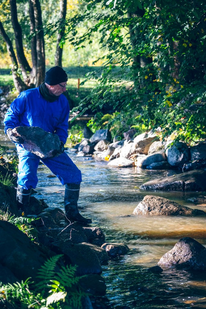 Talin alueella on taimenen kutupaikkoja jo riittävästi. Matalia kivikoisia virtapaikkoja tarvitaan lisää, jotta mahdollisimman moni taimen selviäisi kahdesta ensimmäisestä, kriittisestä elinvuodestaan. Tänä vuonna keskityttiinkin kiveämiseen. Kivien ohella käytettiin maastosta löytyvää puuta.