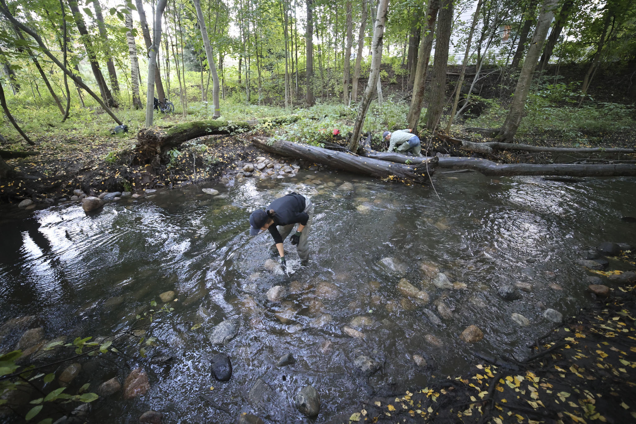 Vuodesta 2009 alkaen olemme kunnostaneet Helsingin Talissa mereen laskevaa Mätäjokea taimenen lisääntymisalueeksi. Torstai-iltana 22.9. talkoiltiin seuran väellä
