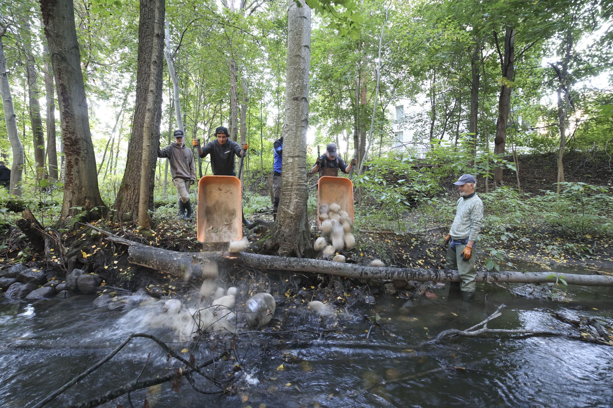 Taimenet kutevat puhtaaseen, karkeaan soraan loka- marraskuussa. Mädin on säilyttävä hengissä, soran sisällä talven yli kevääseen, jolloin uusi taimensukupolvi kuoriutuu. Urbaaniympäristössä jokiin ja puroihin valuu ylivirtaamien aikana muun muassa hiekkaa. Se voi soran sekaan joutuessaan estää mädin kehittymisen. Sen takia soraa saatetaan joutua puhdistamaan. Sitä tehtiin näissäkin talkoissa Marianne Valkaman ohjaamana.